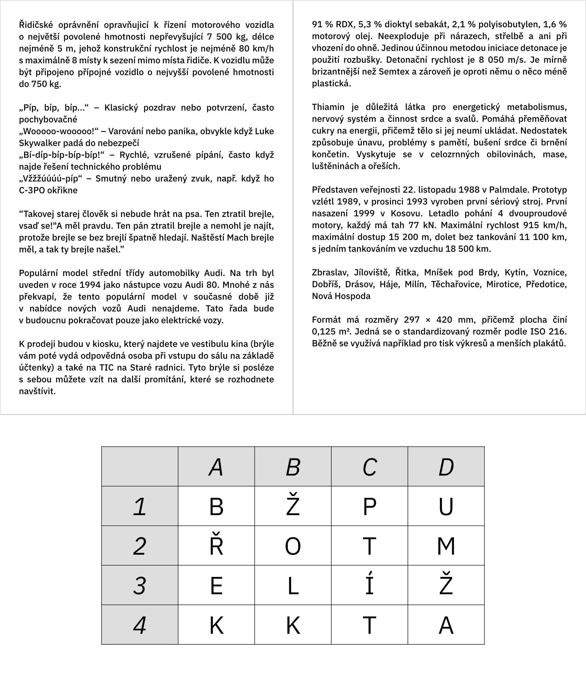 Texty tě vedou k něčemu, co je zapsáno číslicí a písmenem, vyznač všechny polohy v tabulce a ze zbylých písmen poskládej slovo "BUŘTÍK"
