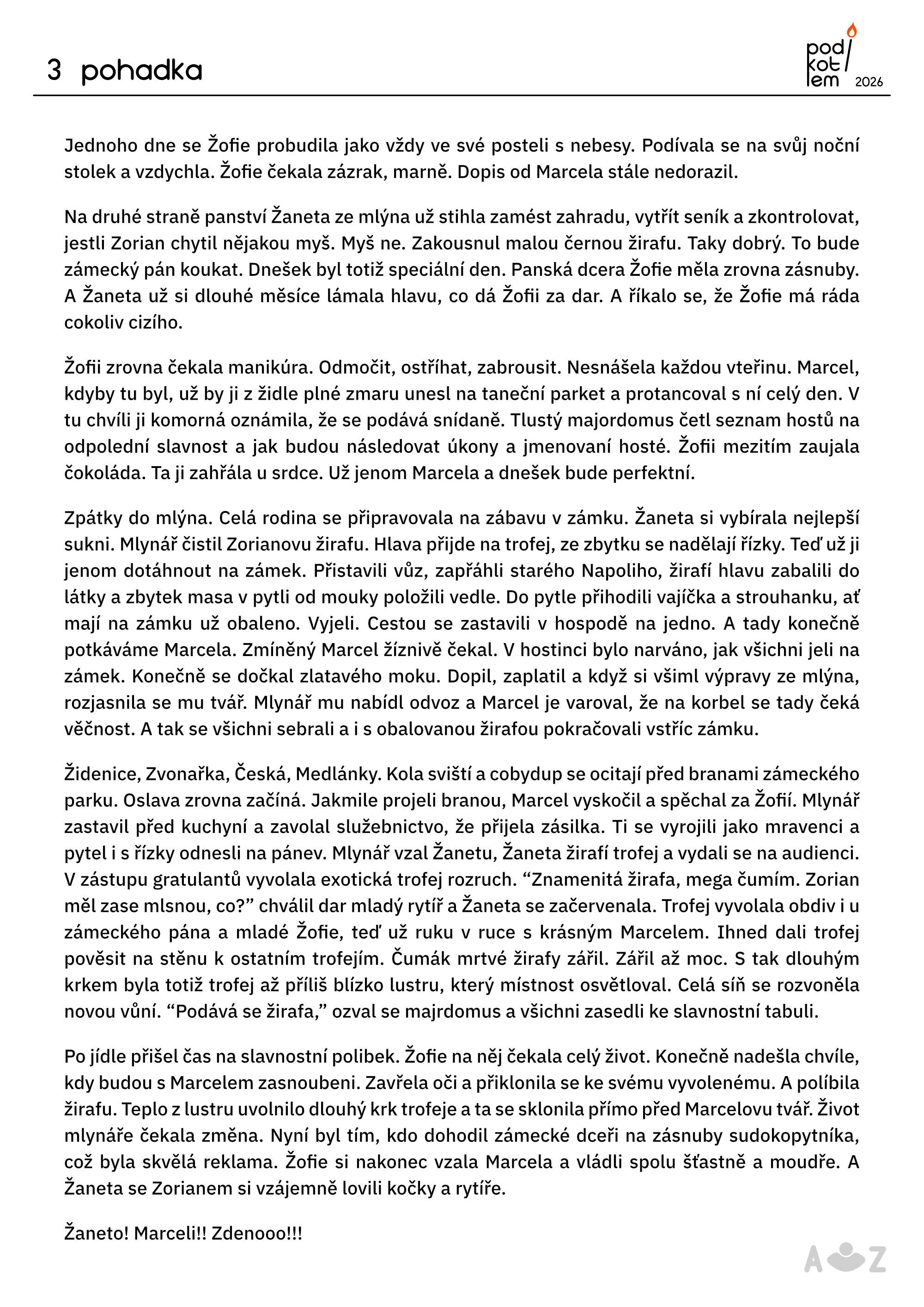 Každá stránka odkazuje na konkrétní budovu (adresa), každá budova na mapě vypadá jako písmeno, podle čísel na začátku posuň písmena v abecedě a získáš tajenku "ZIMAK"